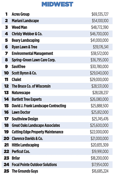When you drill down our ranking is even more impressive in the Midwest. DJFLCI is ranked 15th in the 12-state region, but five of the companies ahead of us are national lawncare and tree service companies.