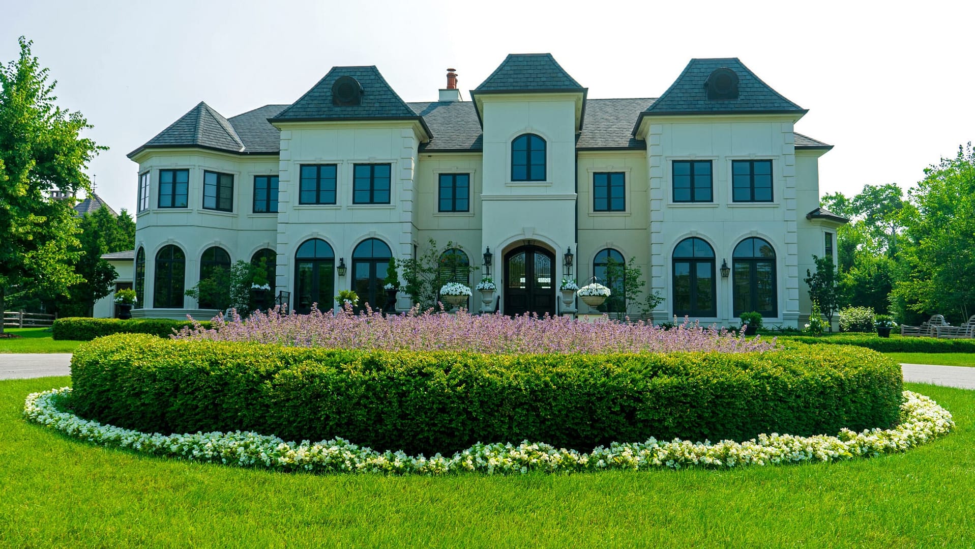 What stands out the most on this property? Is it the huge circular bed of Russian sage and boxwoods in the middle of the circular drive, the pear trees that line the driveway, or the bountiful boxwood hedges?